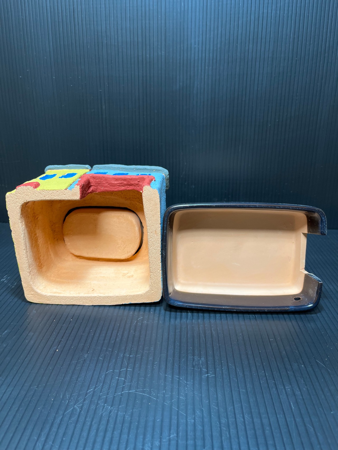 陶器の素地に水が浸みわたると塗装が剥がれやすくなりますのでシェルター内部の未塗装部には出来る限り水を掛けないで下さい。(霧吹き程度なら大丈夫です。)