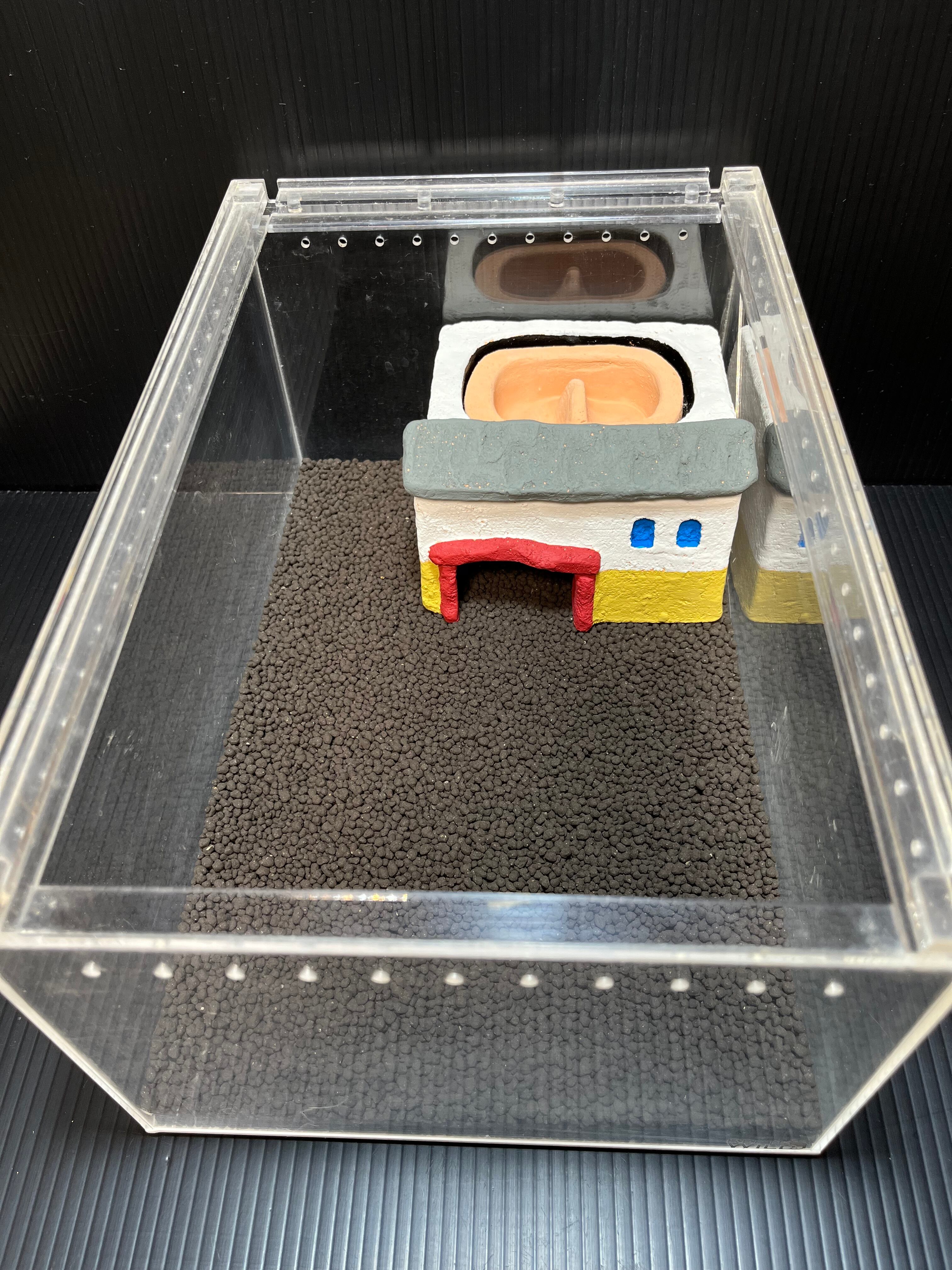 上部に素焼の水入れを装着しシェルター内に湿度を保つ事が出来ます。
