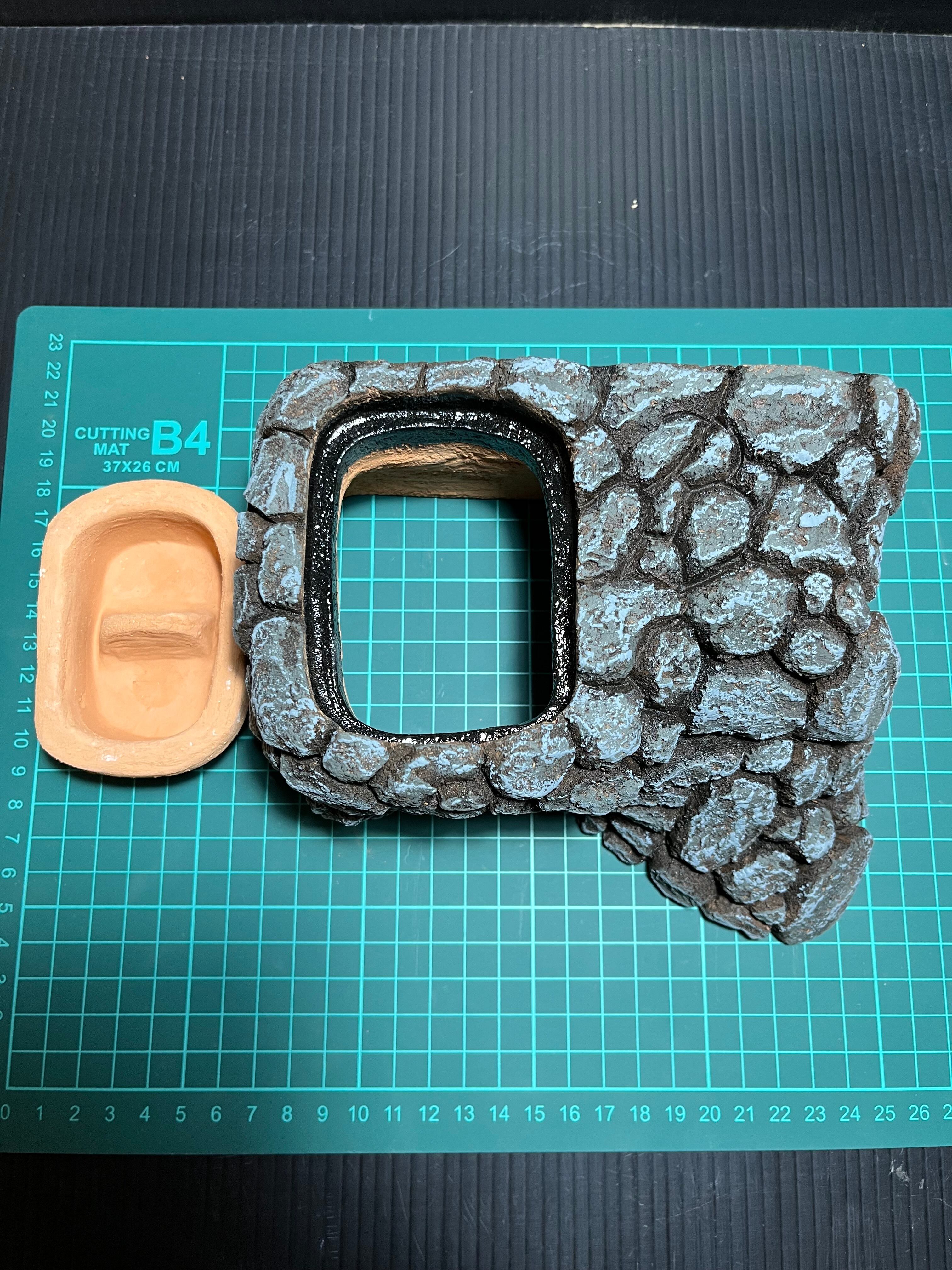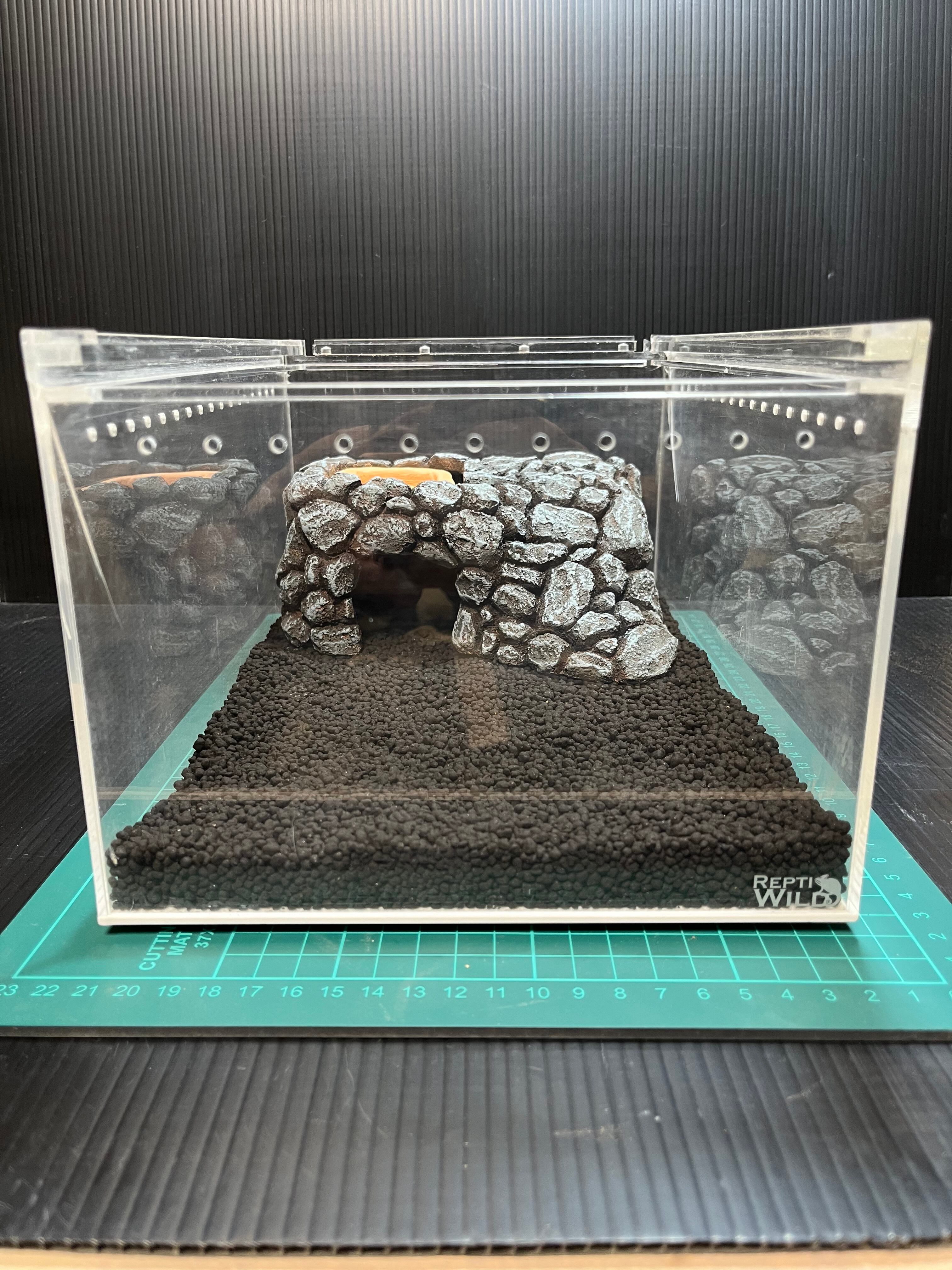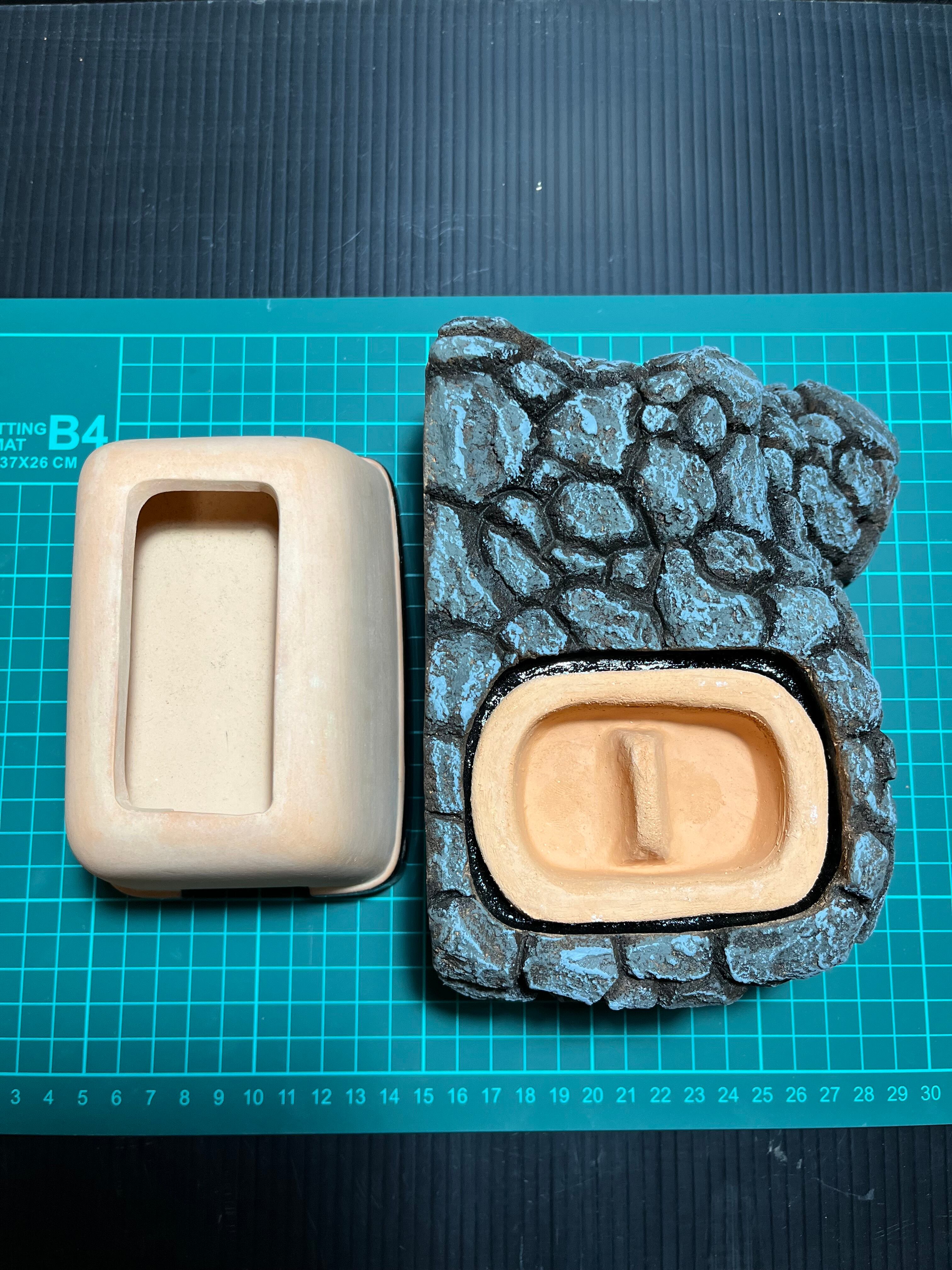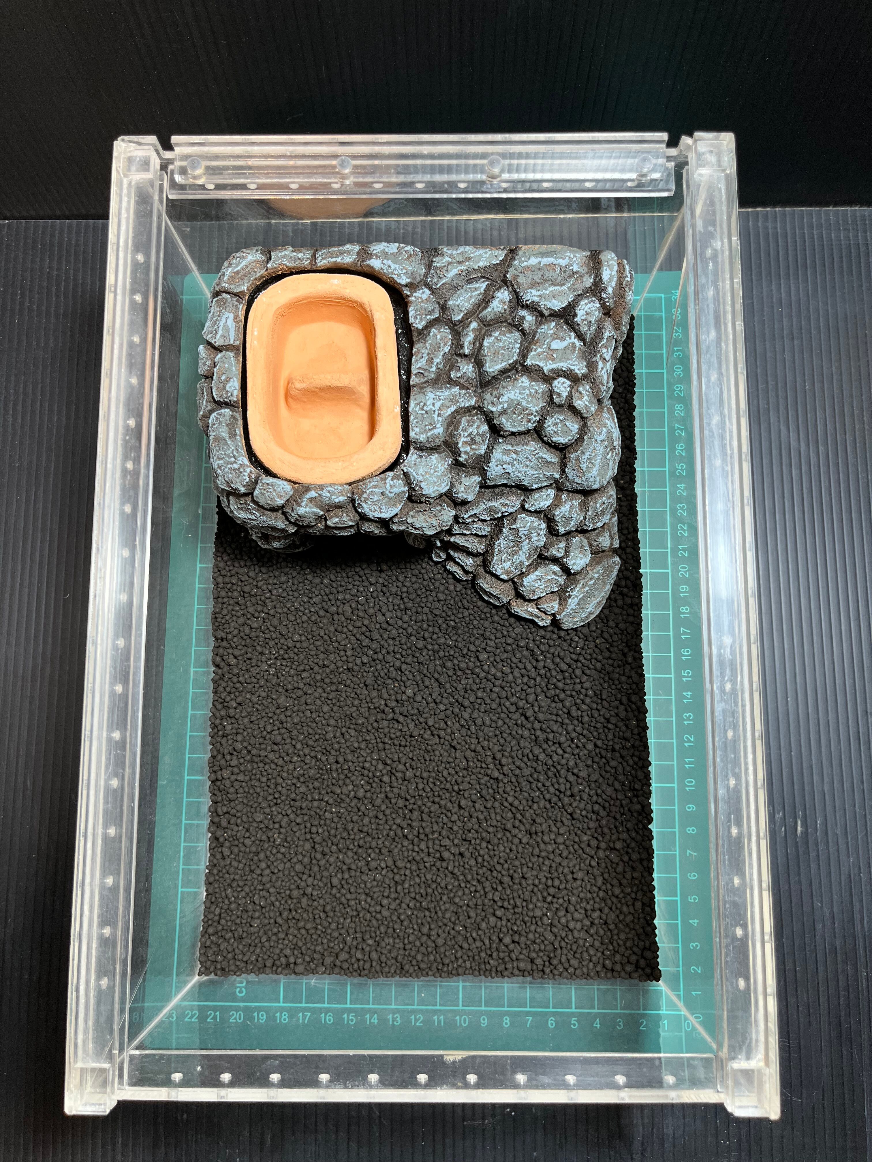 一般的なウェットシェルターMサイズとの比較、レプタイルボックス(20×30×15.5)に入れた画像も参考にして下さい。